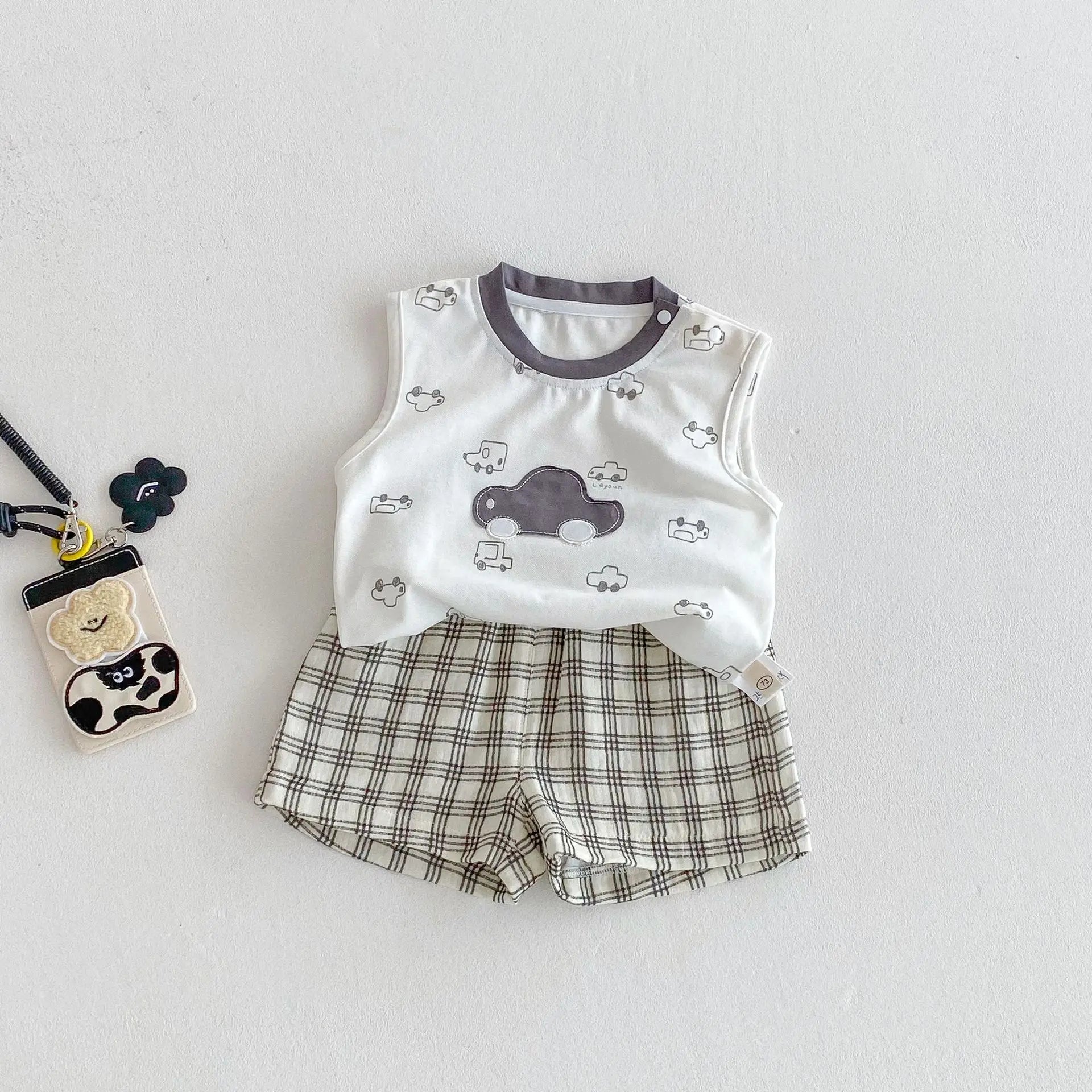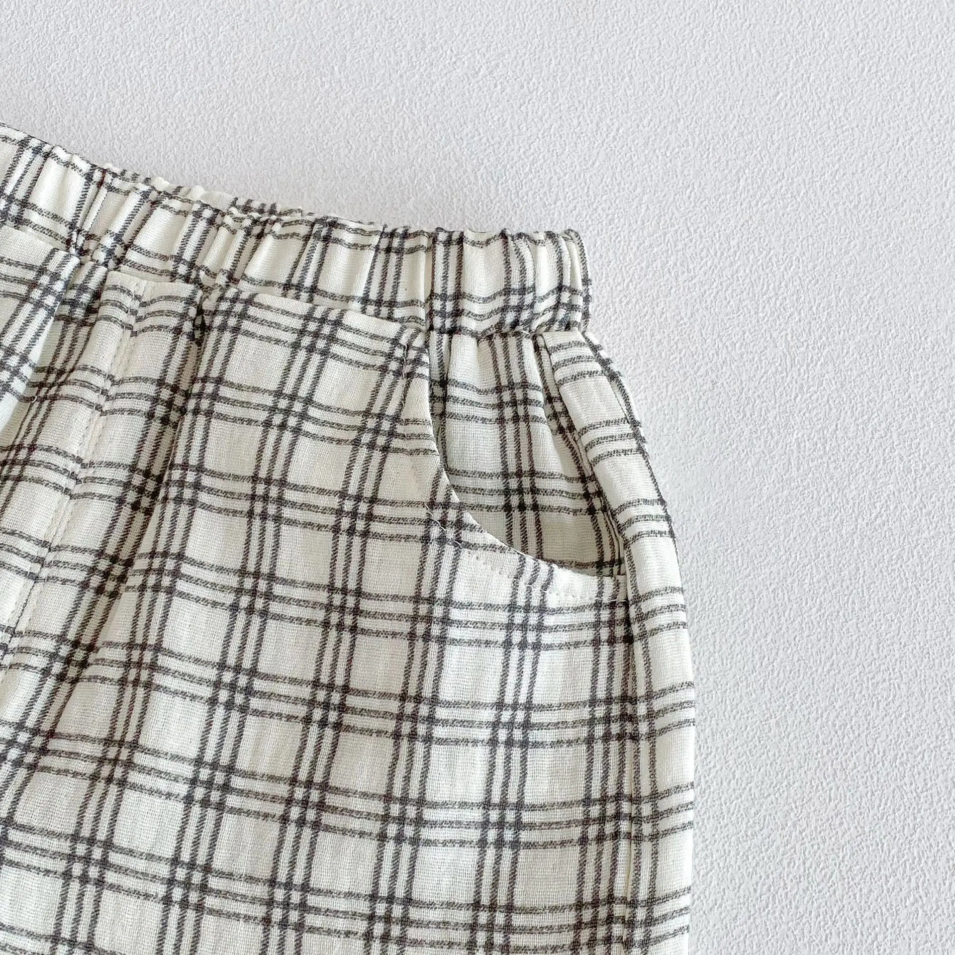 - **Stylish Plaid Shorts**: The shorts boast a classic plaid pattern, combining trendiness with versatility for easy mixing and matching.