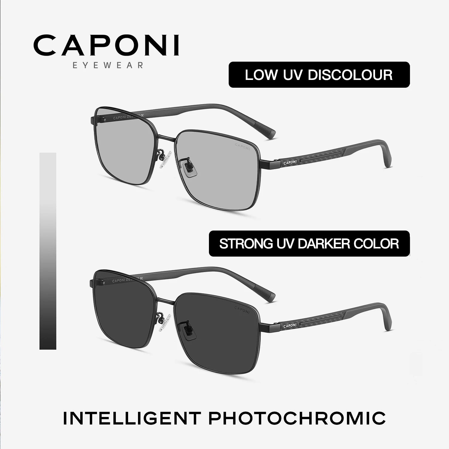 CAPONI Outdoor Sunglass For men Polarized Photochromic Square Shades Driving Sunglasses UV400 Protection Brand Designer BS24704