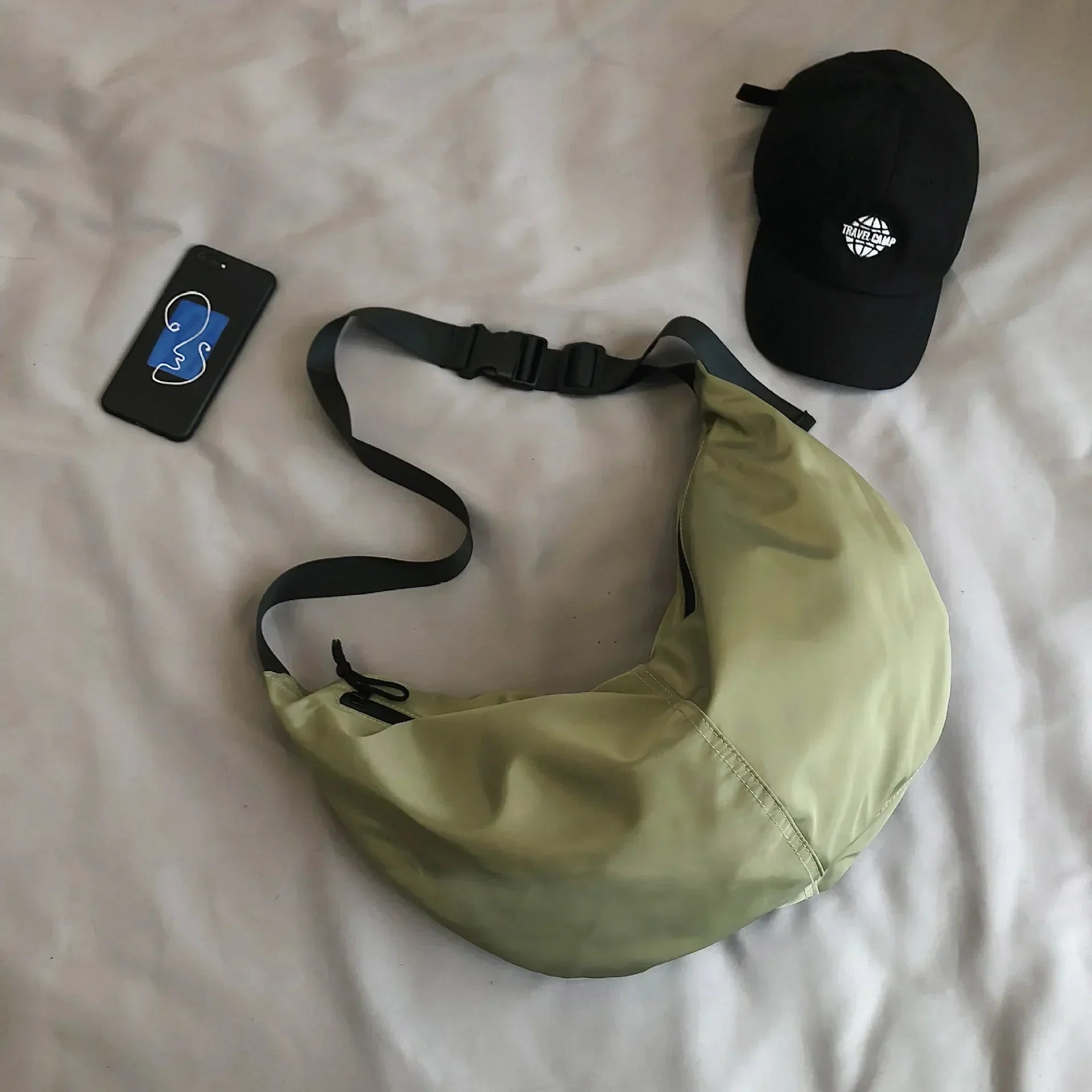 Crossbody Bags Men Solid Color Large Capacity Hobos Unisex Harajuku Japanese Style Nylon Waterproof Travel Shoulder Zipper Purse